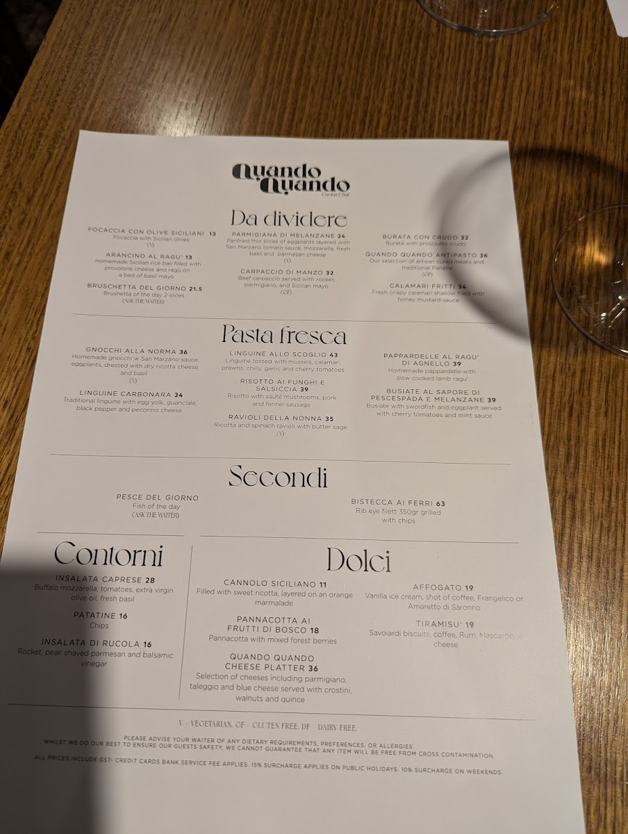 Overall, the menu at Quando Quando Cucina & Bar reflects a deep respect for Italian culinary heritage-simple, generous, and heartfelt. Whether you’re sharing antipasti with friends or savoring a handmade pasta solo, every dish feels like a warm Italian embrace right in the heart of Melbourne.