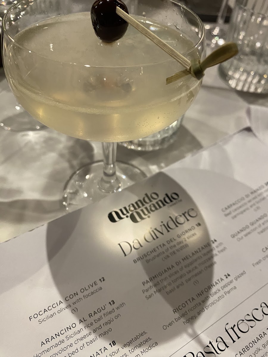 Finally, dessert lovers will be charmed by the Dolci menu, where the CANNOLO SICILIANO and PANNACOTTA AI FRUTTI DI BOSCO capture classic Italian sweetness, while the signature QUANDO QUANDO CHEESE PLATTER, AFFOGATO, and indulgent TIRAMISU make for a perfect finale.